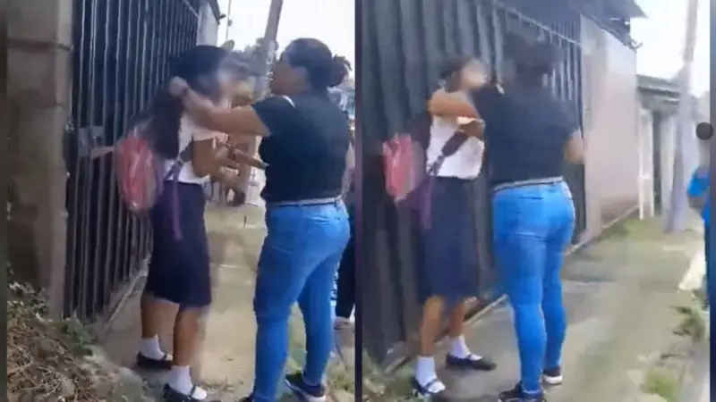Las imágenes muestran cómo es que la mujer agarra a la menor del cabello y empieza a reclamarle, supuestamente por un tema amoroso que implica a su hija.
