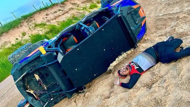 El cantante Bonny Lovy, realizó una publicación en su cuenta de Instagram, donde mostró el momento exacto que practicaba con teryx, cuando sufrió un vuelco de costado.