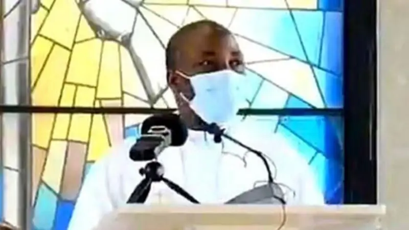 En el video se puede apreciar al padre de nombre Jude, el cual llevaba una mascarilla, dando su sermón ante sus fieles desde el púlpito.