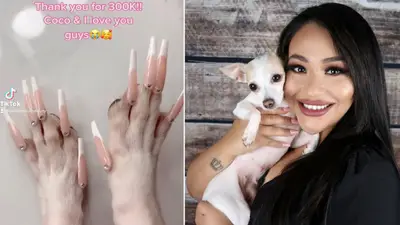 Desde que publicó lindos videos de Coco modelando sus dedos brillantes en TikTok , la técnica de uñas se ha vuelto viral con más de tres millones de visitas. Maritza, que insiste en que las uñas postizas son solo para el espectáculo, ha dividido a los espectadores y a tantos les encanta la idea como a los que miman las patas.
