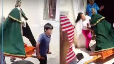 Un grupo de niños se volvió viral tras protagonizar una divertida escena mientras corrían con una escultura religiosa.