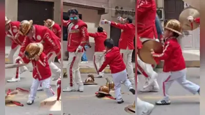 El niño forma parte de la banda junto a su familia y, desde la primera fila, toca los platillos con una pasión que sorprendió a todos. Su presentación no pasó desapercibida: ejecuta la coreografía completa, marca los tiempos con precisión y hasta coloca los platillos en el suelo, como todo un profesional.