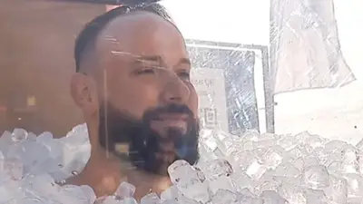 Para sacarle del tanque de hielo tuvieron que recurrir a picar cuidadosamente la capa congelada que, debido al calor corporal, se había pegado alrededor de Szpunar.