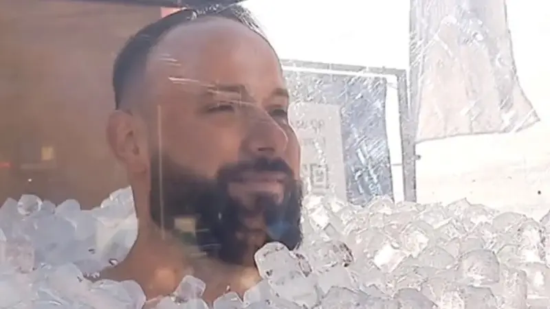Para ello se construyó una mampara especial que comenzó a llenarse con sacos de cubitos de hielo desde primera hora de la mañana y se dispuso a un equipo de socorristas que vigilaban en todo momento el estado del "Rey del Hielo", permaneciendo atentos a sus constantes vitales, informa Noticias Caracol.