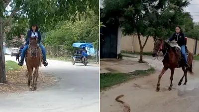 La alumna de un colegio de Bachilleres de Kanasín, Yucatán, México, se hizo viral al llegar a su unidad educativa montando un caballo. El usuario "Melalim" compartió en su cuenta de Facebook un video en el que aparece la joven saliendo con una gran sonrisa de la escuela.