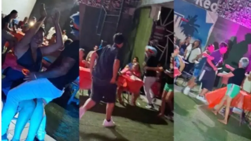Al verlo, el payaso se alejó rápidamente, pero el hombre lo persiguió, fueron varios de los invitados quienes se pusieron en medio para defenderlo.