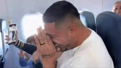 La reacción del hombre —entre el desconcierto, la emoción y una sonrisa que lo dijo todo— provocó aplausos espontáneos entre los pasajeros. El momento quedó grabado y rápidamente se convirtió en un video viral en redes sociales, donde miles de usuarios celebraron la originalidad de la sorpresa y la atmósfera de alegría que se vivió a bordo.