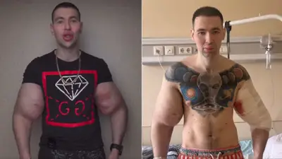 Kirill Tereshin, conocido como el “Popeye ruso”, se inyectó vaselina y synthol en los bíceps para aumentar su tamaño. Su cuerpo rechazó las sustancias y hoy enfrenta infecciones graves, necrosis y el riesgo real de amputación.