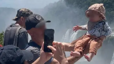 Una escena de alto riesgo quedó registrada en la Garganta del Diablo, el sector más imponente y caudaloso de las Cataratas del Iguazú. Un visitante captó el momento en que un hombre sostuvo a un bebé en el aire, por encima de la baranda de seguridad del balcón, con la intención de obtener una fotografía.