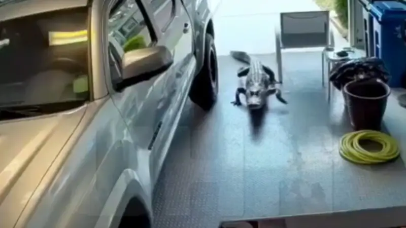 Un inusual y alarmante incidente se registró en Sun City Center, en el estado de Florida, donde un enorme caimán ingresó al garaje de una vivienda, generando un gran susto entre los propietarios.