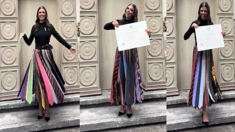 El momento quedó registrado en un video de TikTok que rápidamente tocó el corazón de miles. En las imágenes, Verónica aparece luciendo una pieza hecha con las corbatas de su papá, un homenaje que ella describe como “necesario” para sentirlo cerca en el día que él más había esperado.