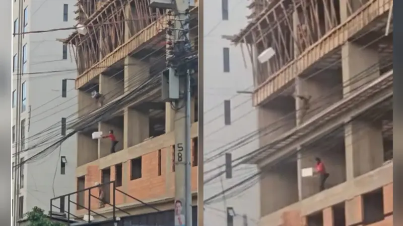 El clip, difundido en TikTok, generó todo tipo de reacciones por una escena que, a simple vista, desconcierta: los bloques parecen “volar” hacia los pisos superiores, como si fueran lanzados con ayuda del viento.