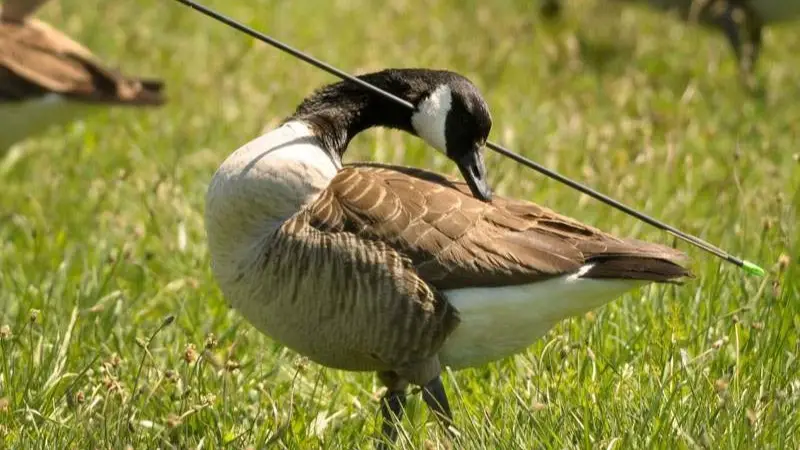 Un ganso, de Boulder, Colorado, fue encontrado con una flecha incrustada directamente en la cabeza. Afortunadamente, la policía del lugar lo pudo atrapar, después de cierta resistencia, y cortar los extremos de la flecha.