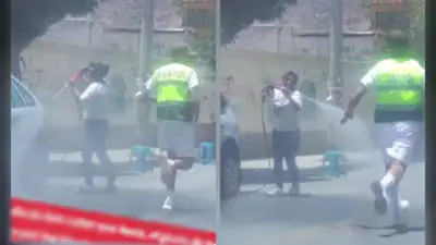 [Video] El gesto solidario de una vecina que lavaba su motorizado se convirtió en viral al rociar con agua a un grupo de policías que trotaba bajo el intenso calor en La Paz.