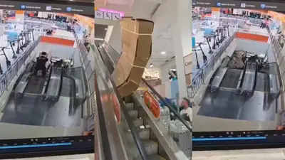 Lo que debía ser un simple traslado terminó en desastre: una escalera mecánica y un techo se aliaron para destruir un televisor de lujo.