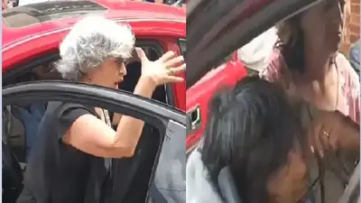 En las imágenes se puede ver a un policía acercarse a la escena protagonizada por las cinco mujeres, y ante la intervención de la autoridad, la joven de 32 años, volvió a retomar el asiento del conductor e intentó embestir al funcionario, logrando escapar del lugar.