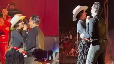 Fue en el más reciente concierto de Nodal en Los Ángeles, Estados Unidos. Para la ocasión, su esposa se preparó a consciencia y lució sus mejores galas para cantar juntos "Dime cómo quieres".