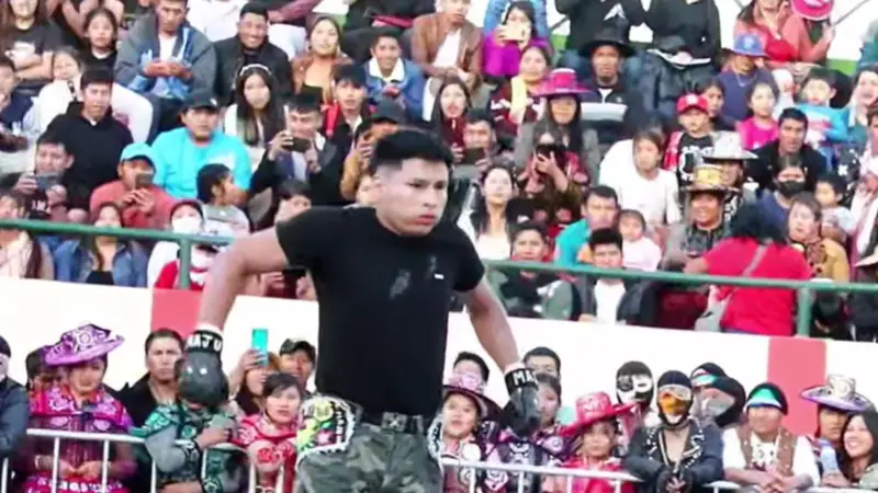 Rioja, peleador boliviano considerado el número uno en Tinku, se presentó en el Círculo Social La Unión en Arequipa – Perú, como parte de la función estelar denominada Takanakuy Perú vs Tinku Bolivia, realizada este pasado domingo.