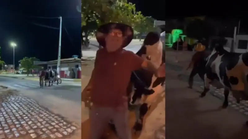 El bovino causó sensación en redes sociales, porque ‘literalmente’ se llevó a su dueño por delante.