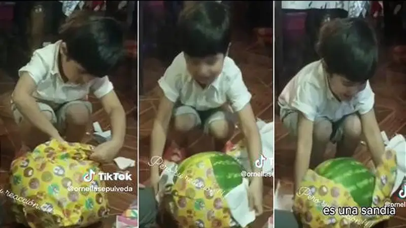“¡Es una sandía! Es una sandía que yo quería. Gracias, Santa”, dijo el pequeño de nombre Mati.