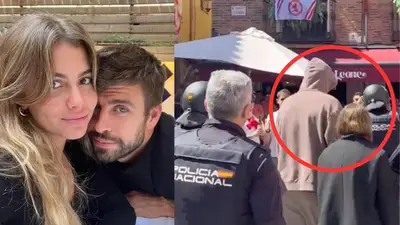 En las imágenes se observa al exfutbolista y su novia saliendo de un restaurante escoltados por policías, mientras que un grupo masivo de personas los abucheaban, recordando la presunta infidelidad de Pique hacía Shakira.