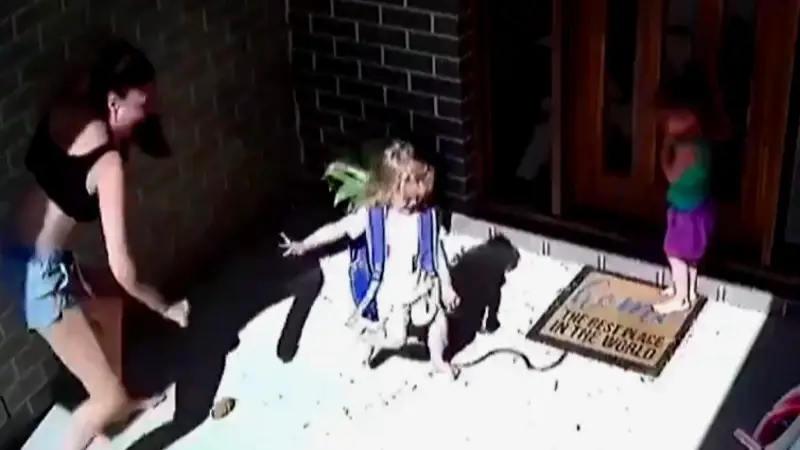 Un impactante video muestra cómo una madre australiana evita por poco que sus hijas sean mordidas por una serpiente marrón, una de las más letales del mundo.