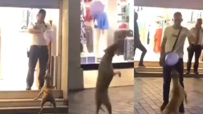Un guardia de seguridad habría inflado un globo lanzándolo al animalito, sin pensar que este se llenaría de felicidad.