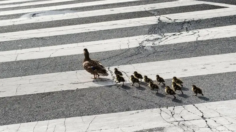 No todas son malas noticias, existen aquellas que suelen robarte una sonisa o mejorarte el día, como la que ha compartido un medio chino a través de un video esta semana que recoge el momento en que una familia de patos cruza por un paso de cebra en Pekín mientras todos los coches se detienen para que puedan cruzar con calma.