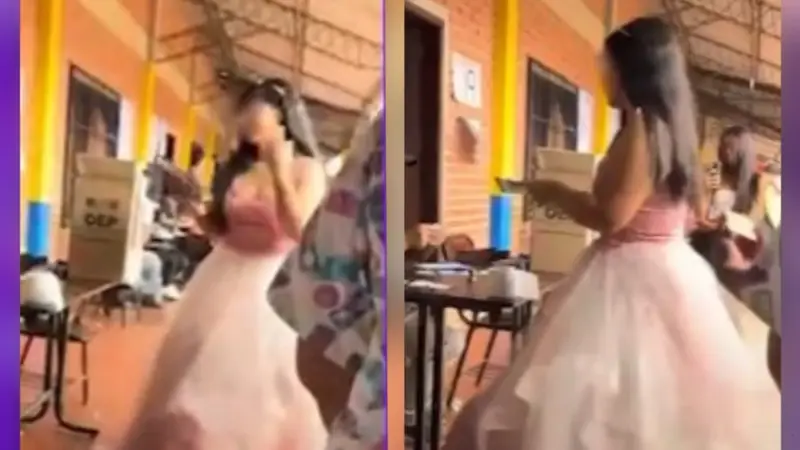 El atuendo, amplio y elegante, recordaba a los tradicionales vestidos de quinceañera, lo que hizo que la joven destacara de inmediato entre los votantes. Su presencia no pasó desapercibida y rápidamente se convirtió en tema de conversación tanto en el lugar como en plataformas digitales.